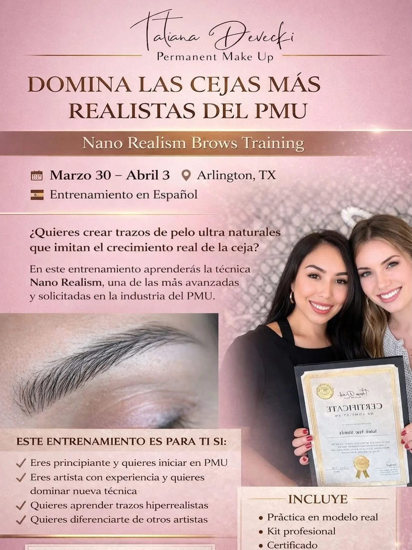It starts with 3 intense hands-on training, and it includes only one technique ( brows, eyes, or lips) followed by 3 weeks of shadow as well as doing procedures under our supervision. We give you access to the real side of the industry. Our classes are small groups or private.